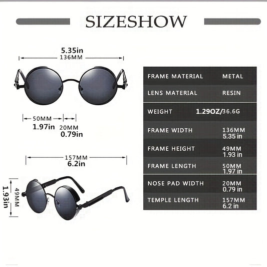 1pc Gafas de sol Steampunk para hombres, montura de metal vintage, gafas de sol de marco redondo y patas de resorte de marco grueso, elección ideal para regalos