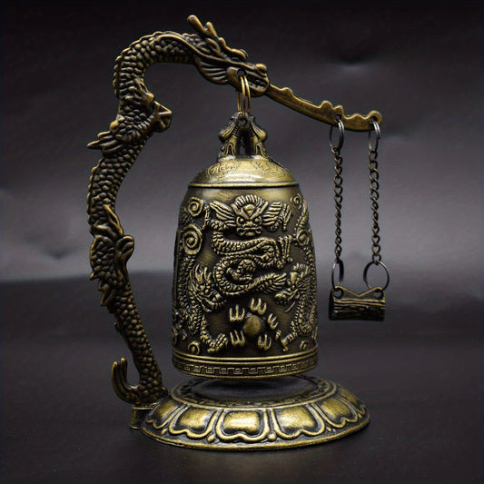 1pc, Campana de dragón de bronce antiguo - Decoración de Feng Shui china para escritorio o hogar - Campana de bloqueo de dragón tallada a mano para coleccionistas de artes y manualidades