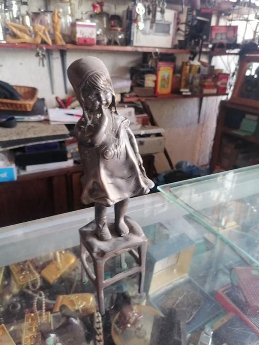 "Encantadora Figura de Bronce de Niña Pensativa - Escultura Vintage para Coleccionistas y Decoración"