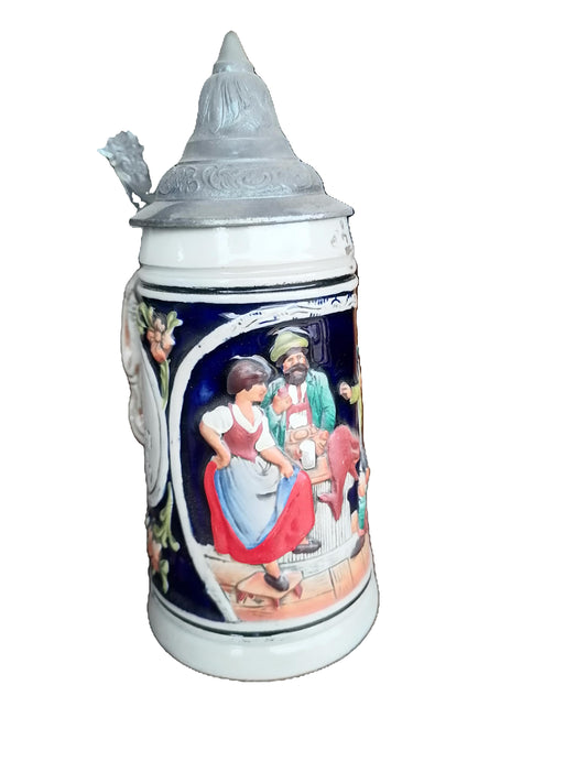 "Tarro de cerveza vintage de Alemania Occidental de 1/4 litro ""Ich Jag Den Hirsch"