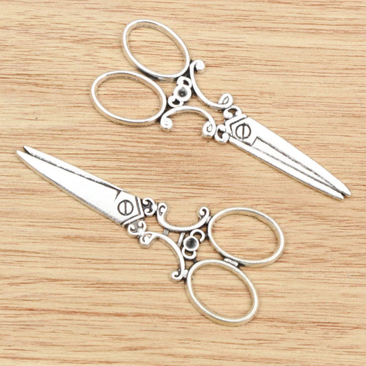 6pcs 60x25mm Antique Bronze and Antique Silver Plated Scissors Handmade Charms Pendant:DIY for bracelet necklace