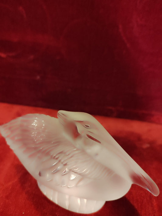 René LALIQUE "PELICANO" Escultura de vidrio transparente y esmerilado