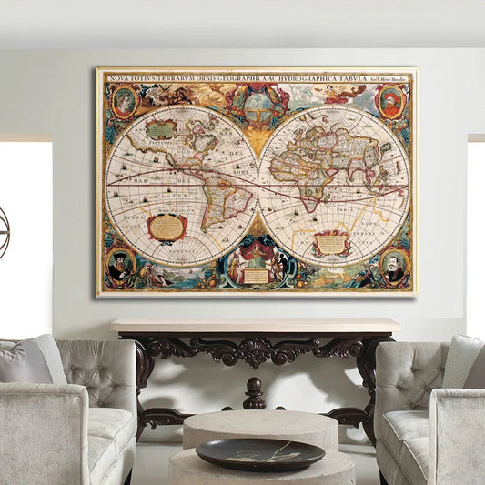 World Map Vintage Antique Historic Educational Classroom Globe Projection Wall Decor Canvas Art Prints Poster Study Room Decor