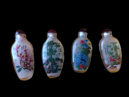 Set de 4 Botellas Chinas de Rapé con Pintura Invertida | Con Estuche Decorativo