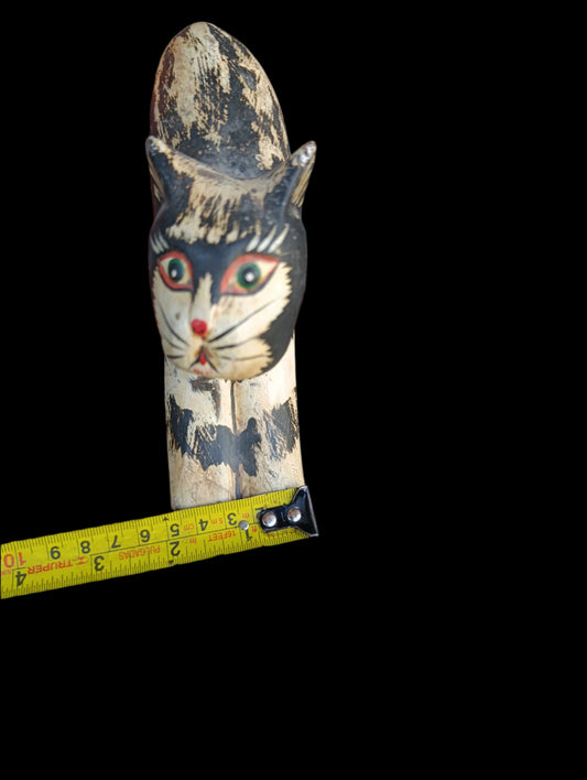 Gato Tallado y Pintado en Madera | Escultura Artesanal Decorativa