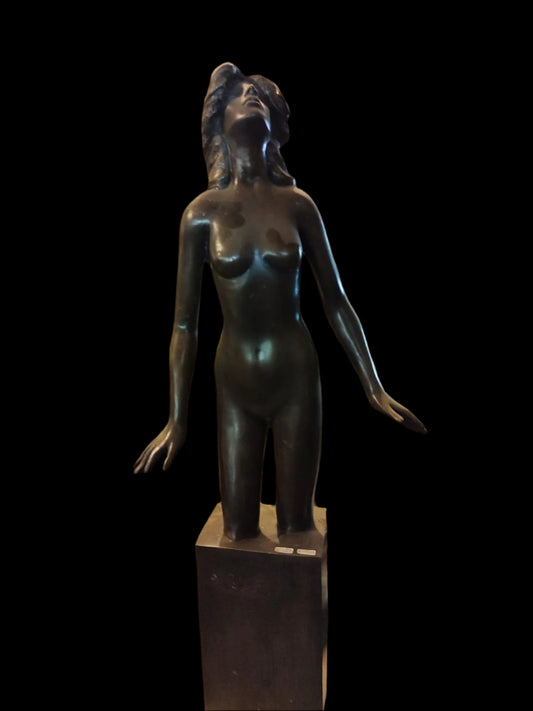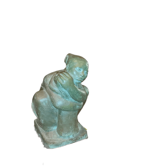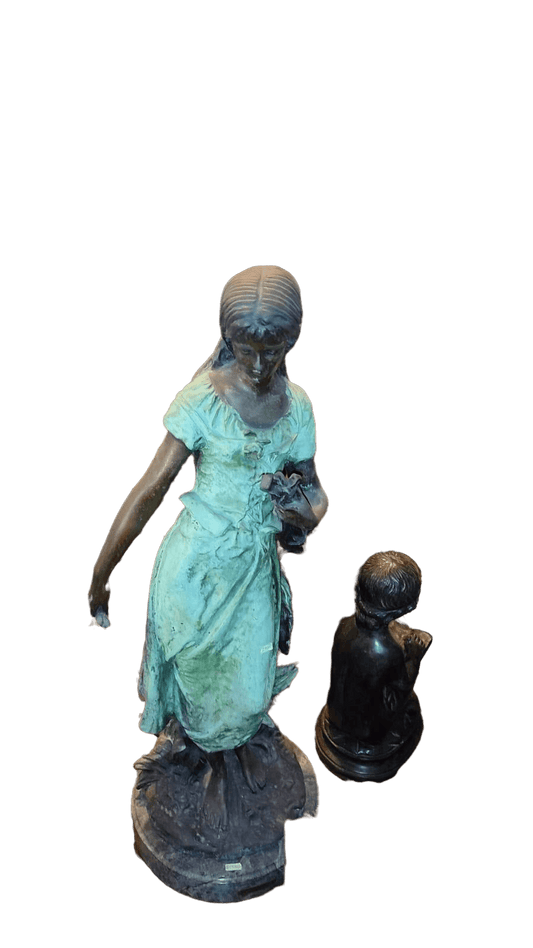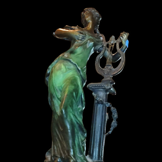 Escultura de bronce de niña con arpa de Auguste Moreau