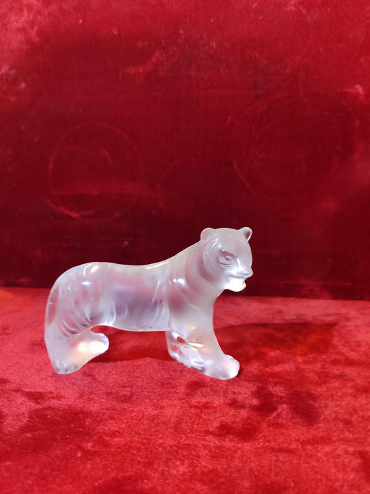 Lalique Crystal Bengalou Satin Finish Standing Bengal Tiger Sculpture- Signed