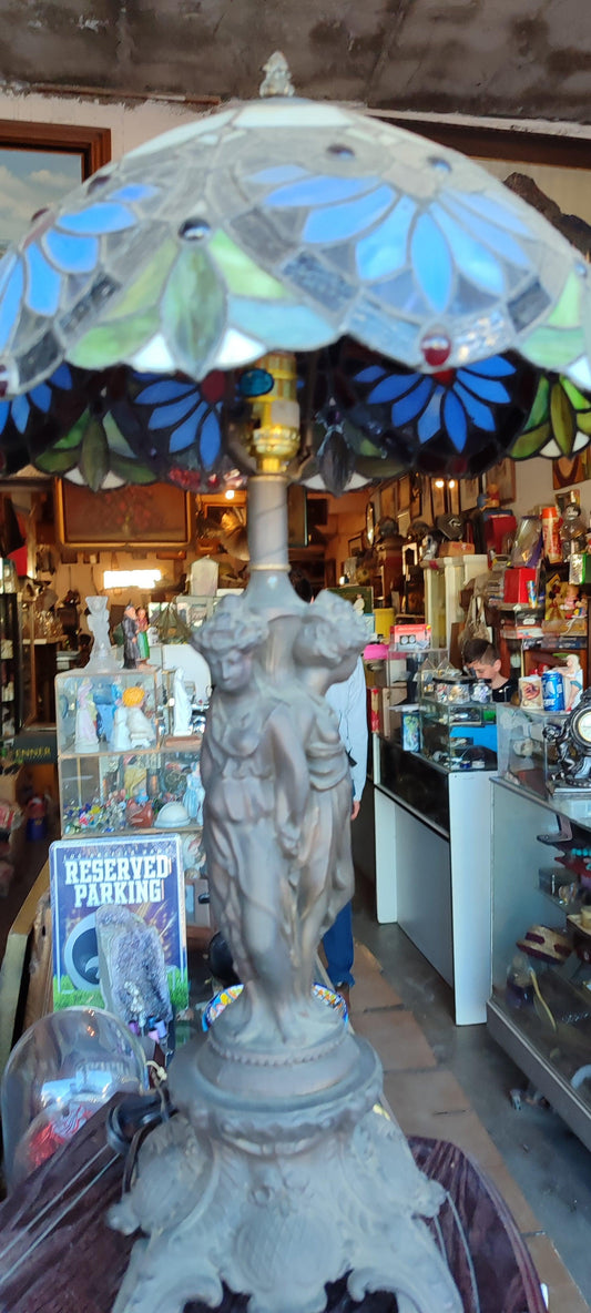 Lámpara/Jarrón de Cristal Azul Cobalto con Grabados