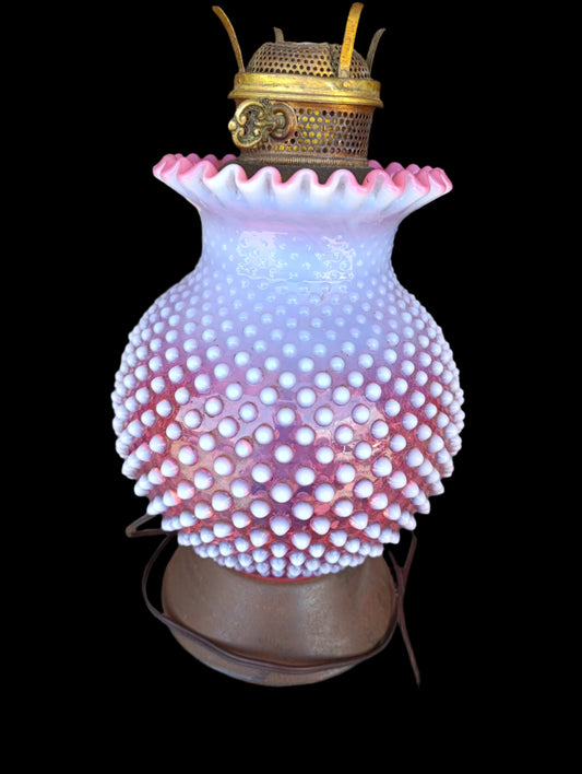 Lámpara de Mesa Vintage Fenton | Cristal Rosa Cranberry Opalescent Hobnail con Base de Latón | Eléctrica
