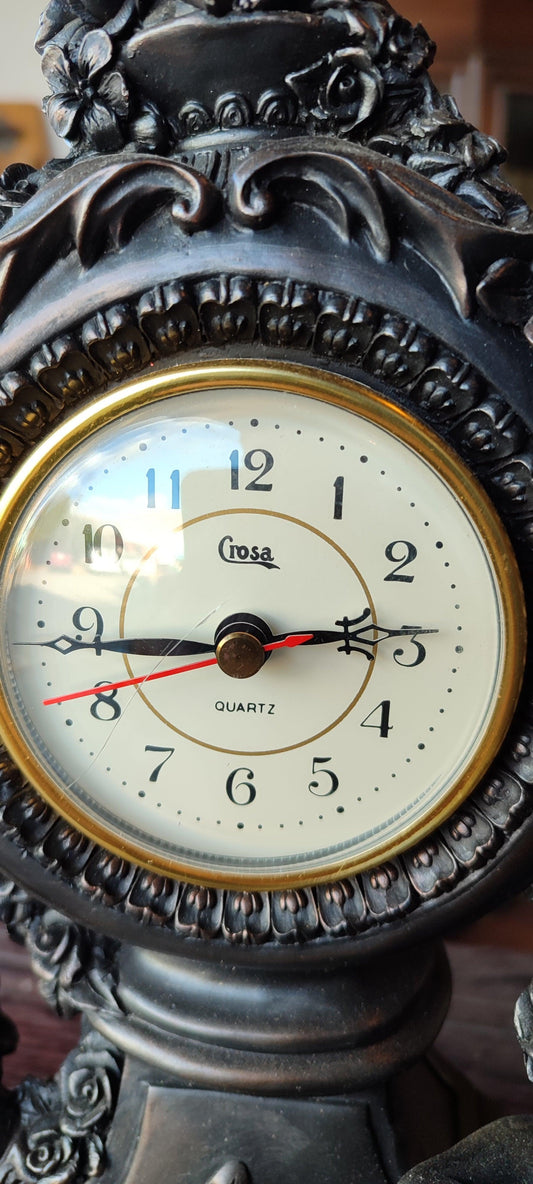 El reloj de mesa de plástico de la marca Crosa con temática de querubines