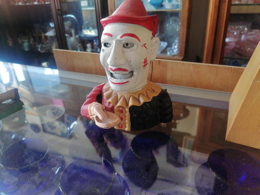 Banco mecánico de monedas de hierro fundido bufón de payaso Humpty hecho en Taiwán