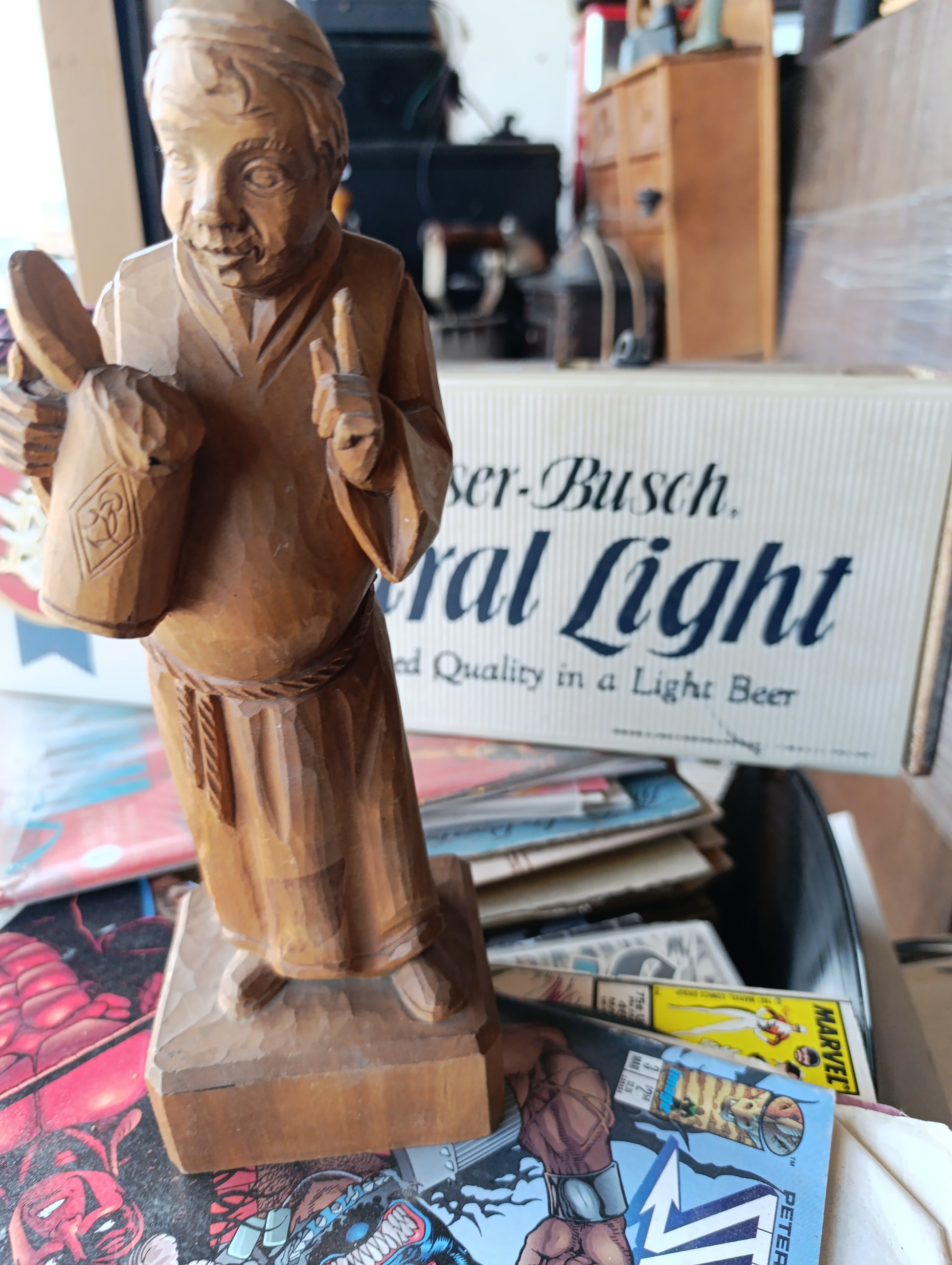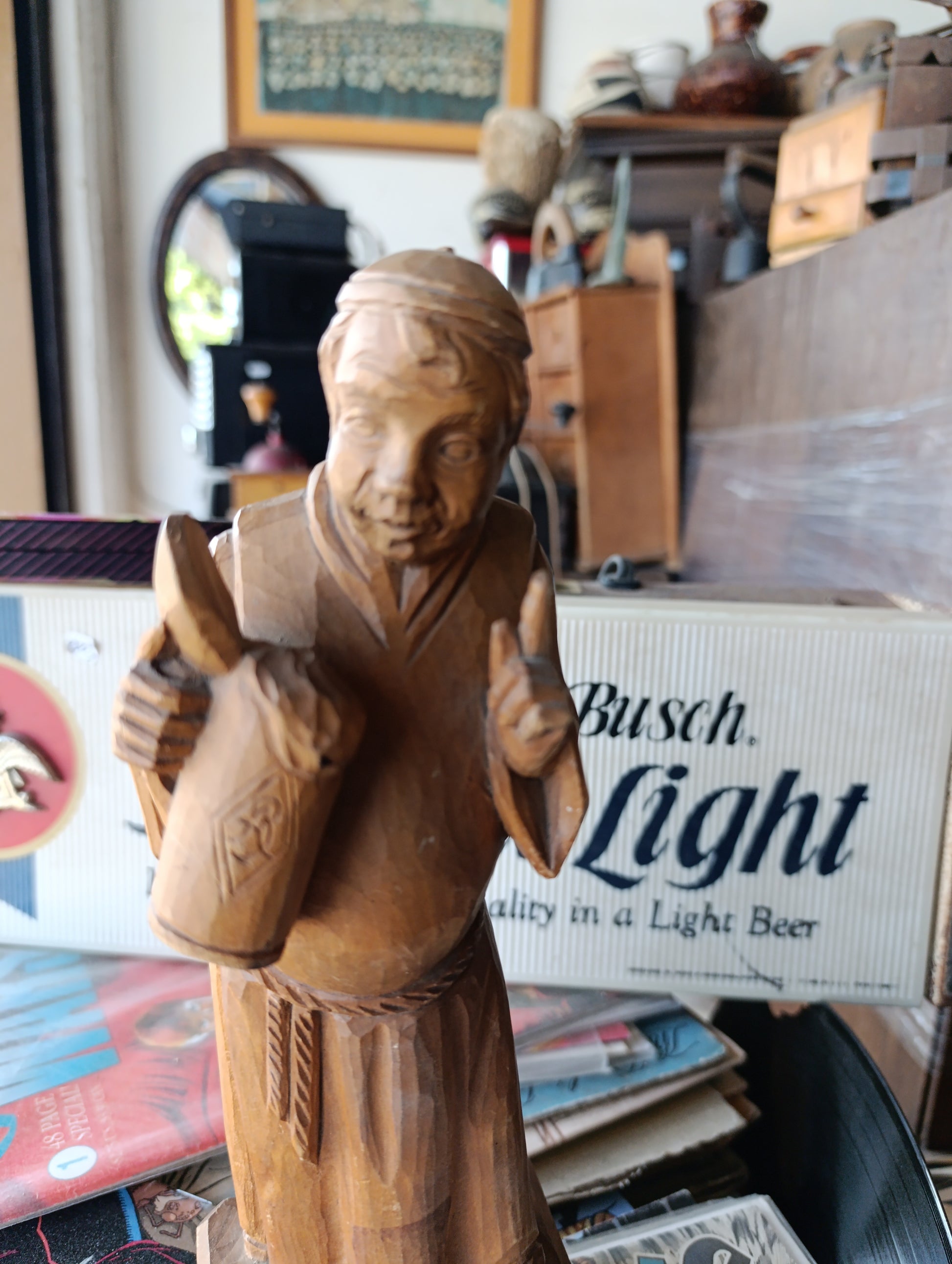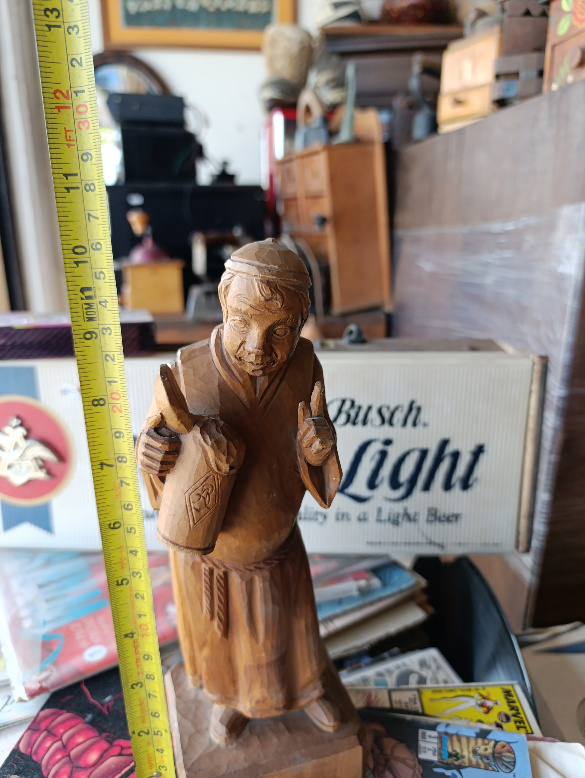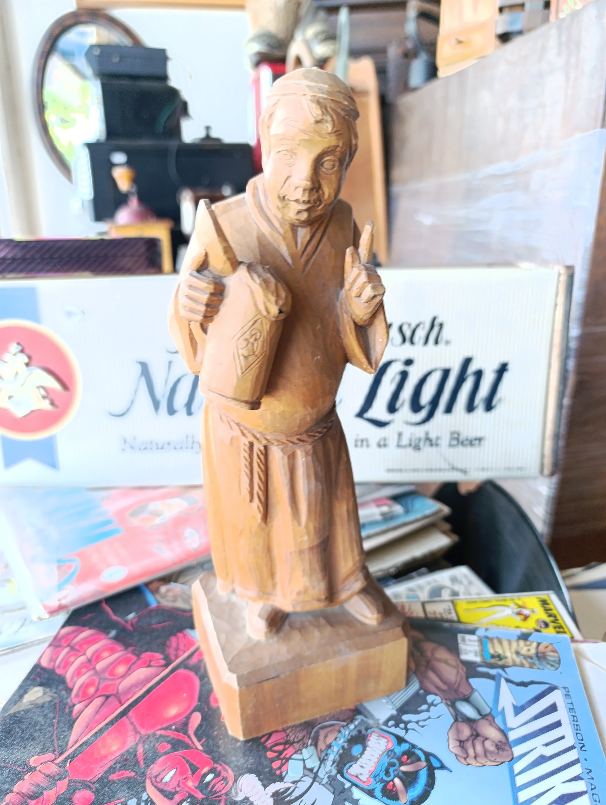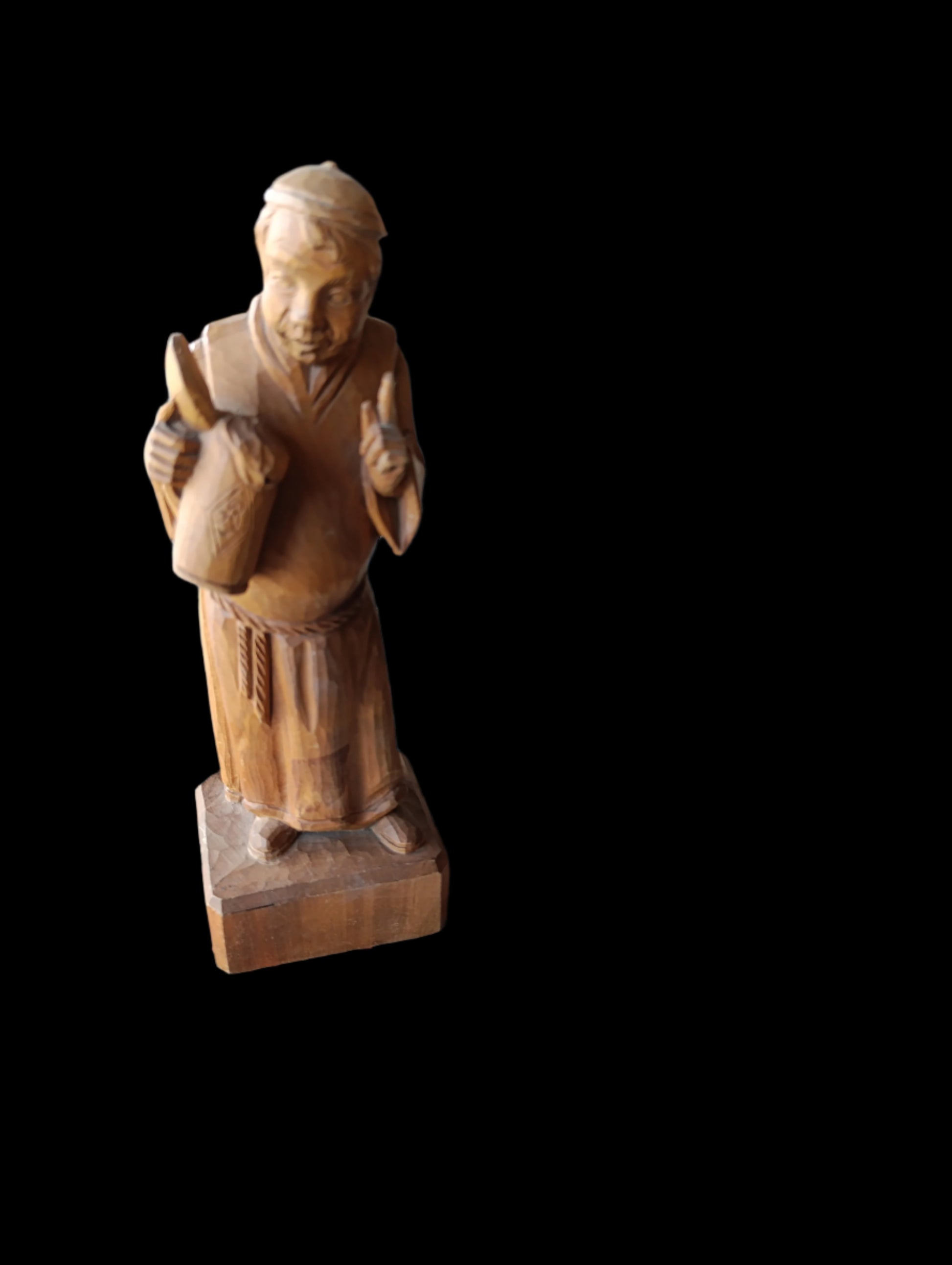 ✔ Tallado a mano: Detalles finos en el rostro, la vestimenta y los gestos del anciano.