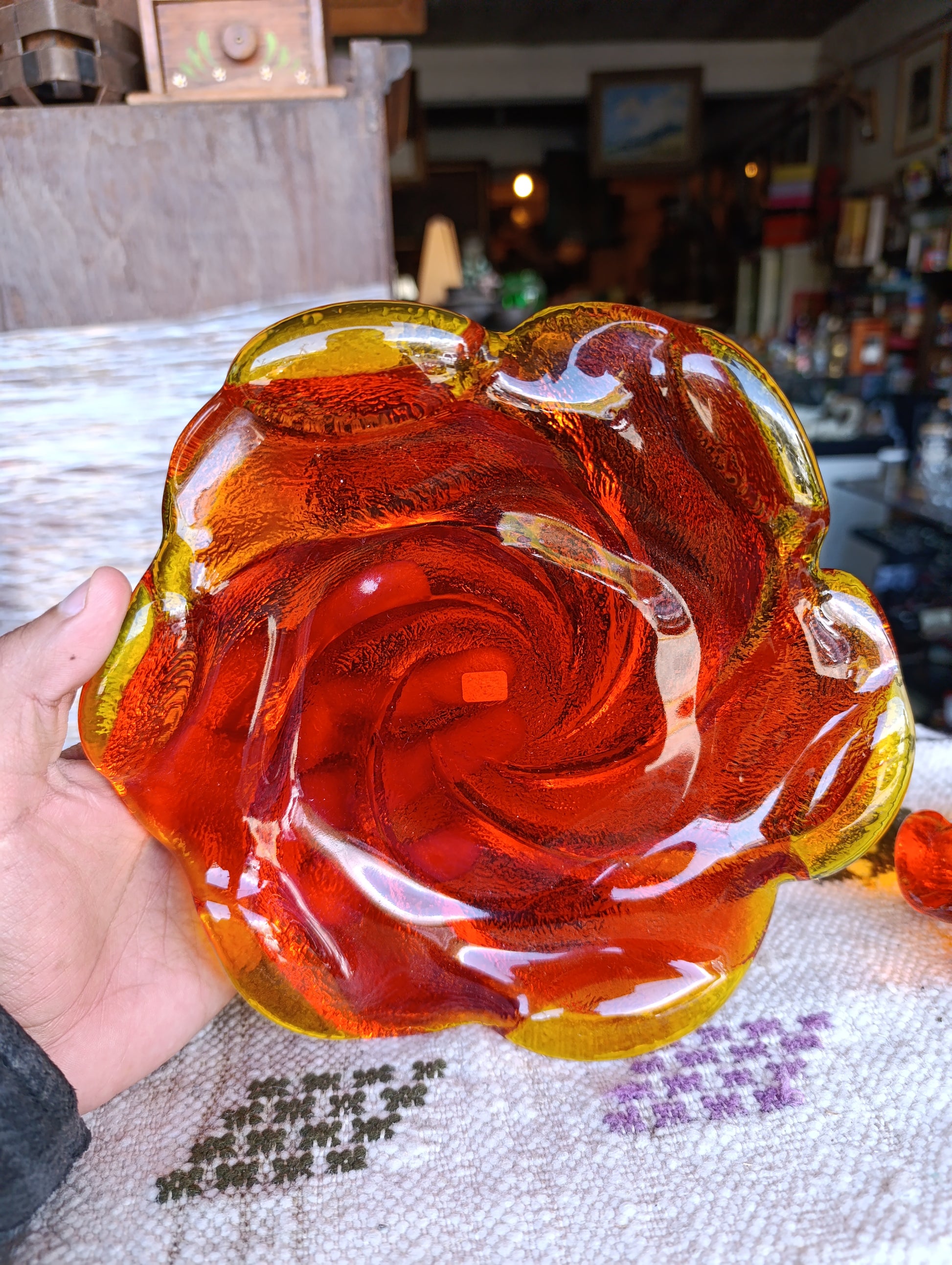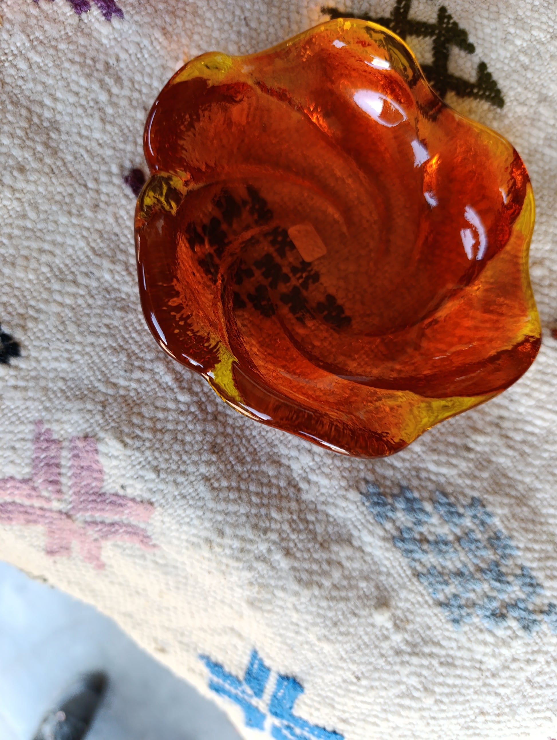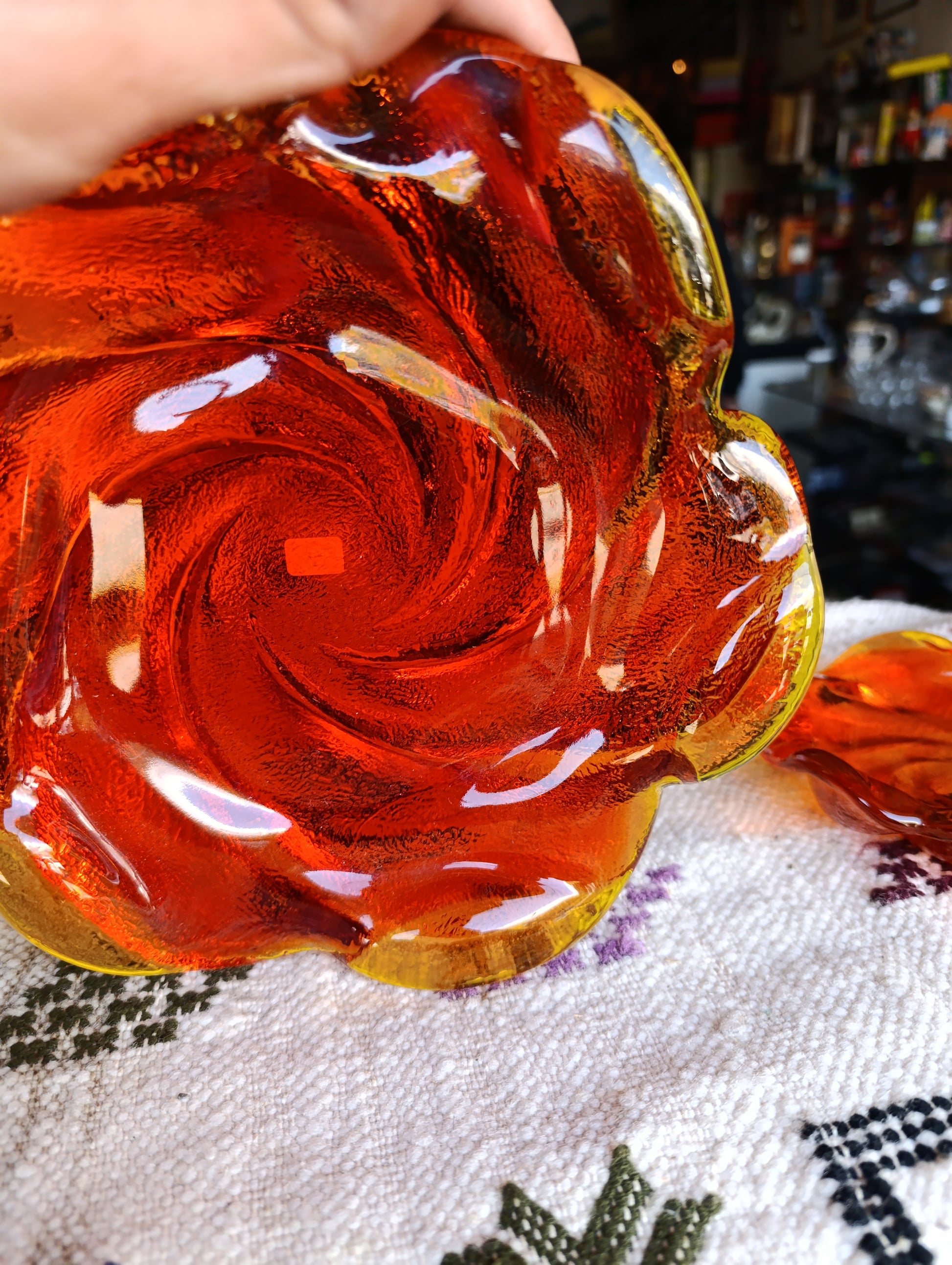 📌 Revive el glamour de los años 50 con este icónico cenicero Fenton en remolino naranja — arte en vidrio con estilo y carácter. 🔥🟠✨