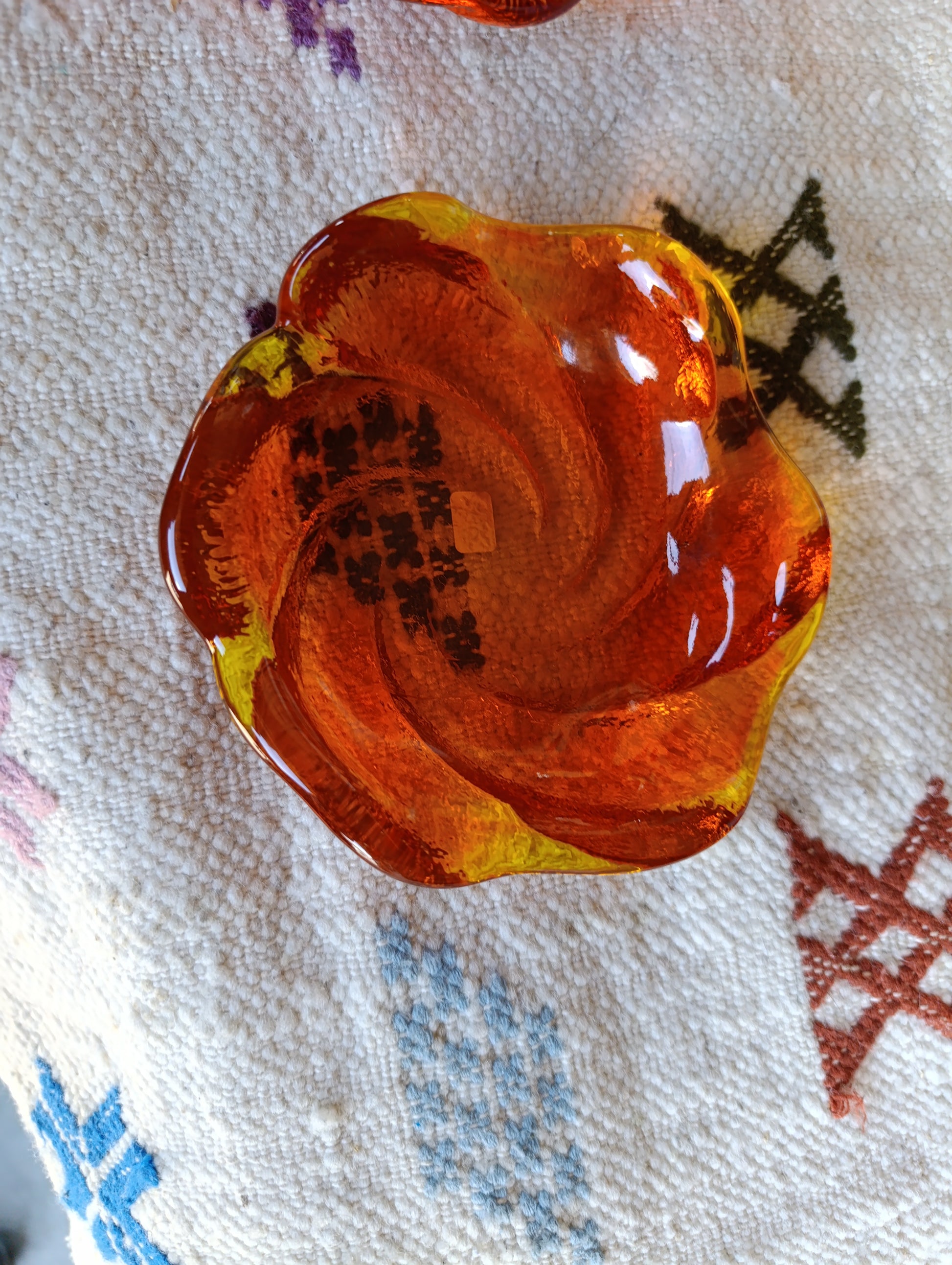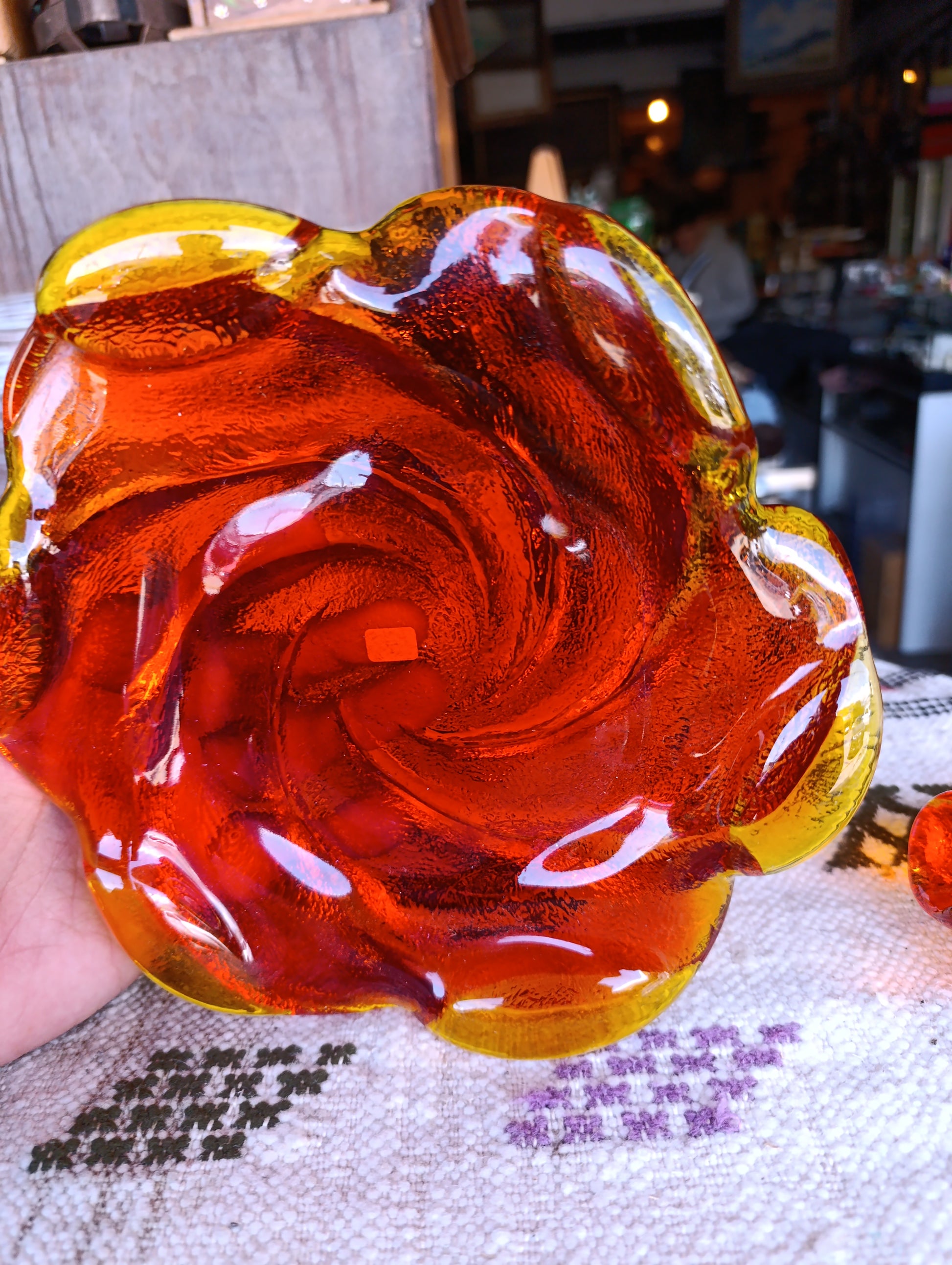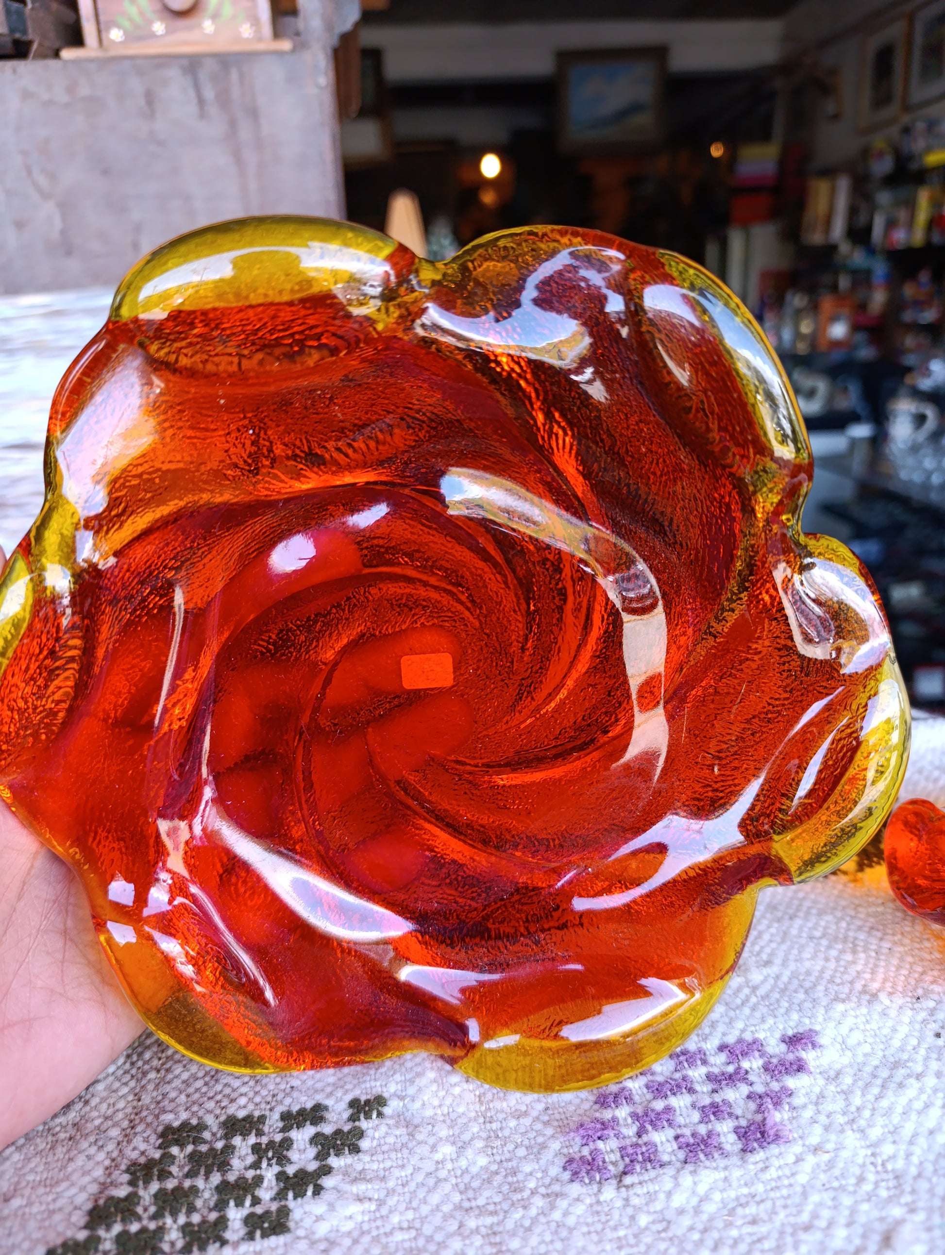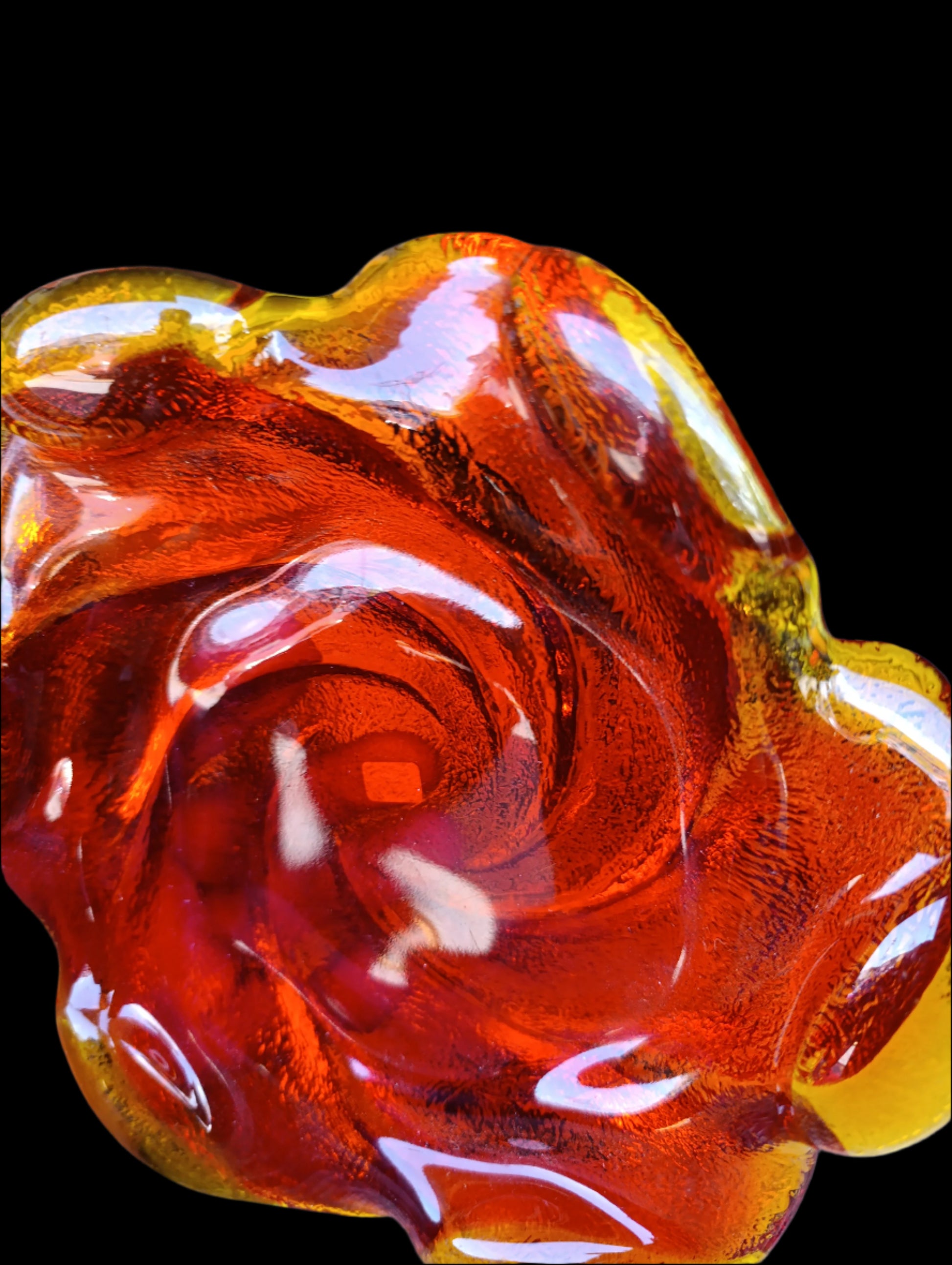 📌 Revive el glamour de los años 50 con este icónico cenicero Fenton en remolino naranja — arte en vidrio con estilo y carácter. 🔥🟠✨