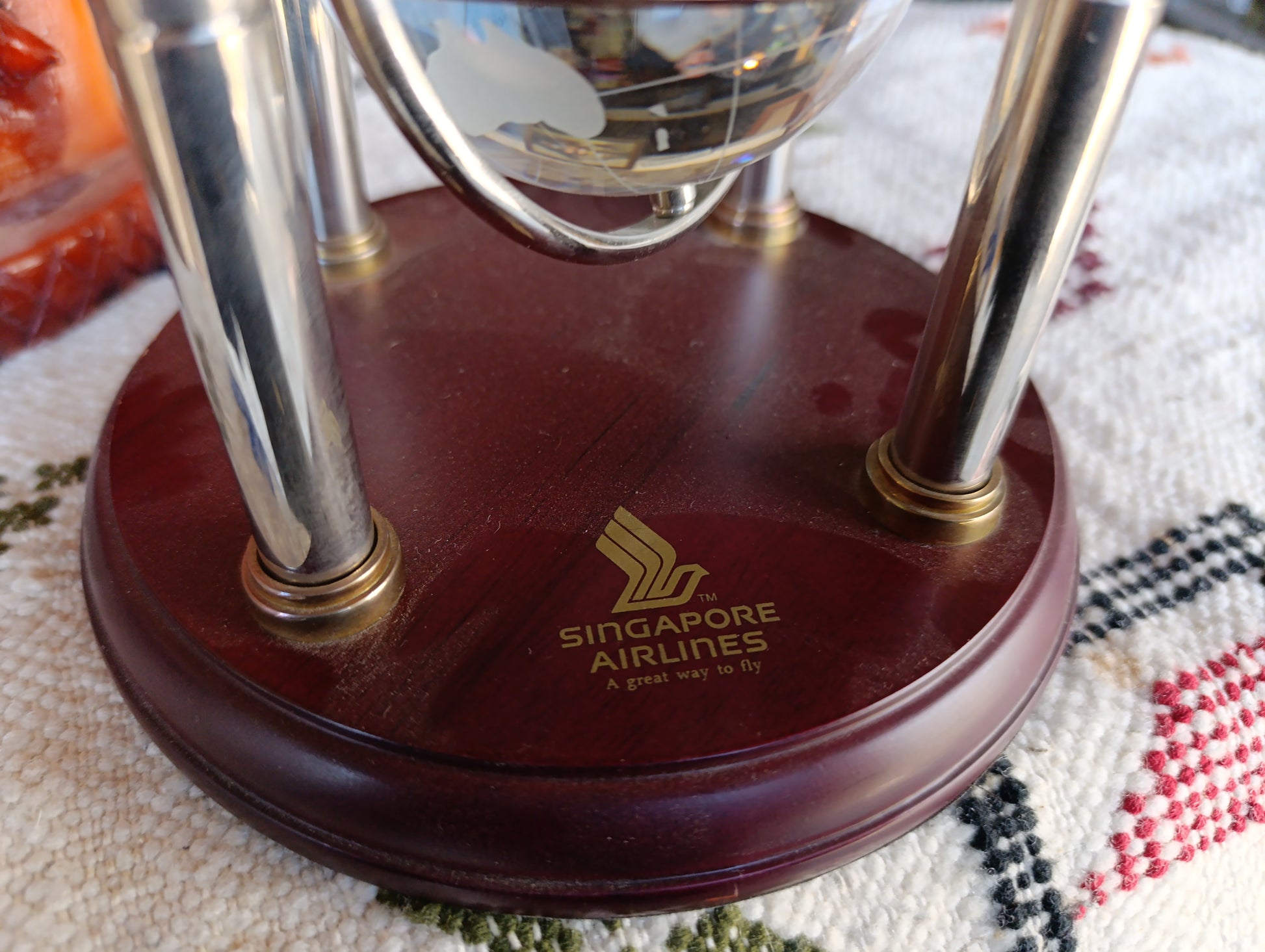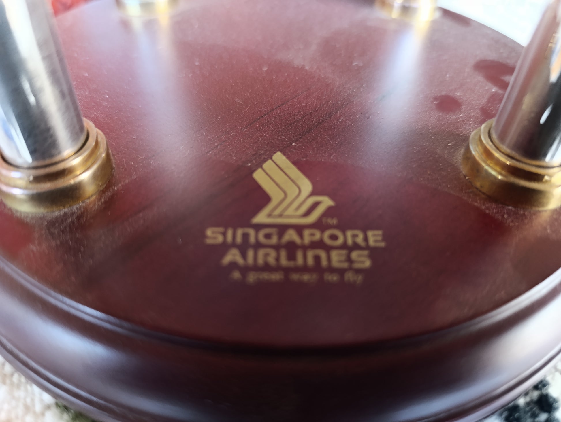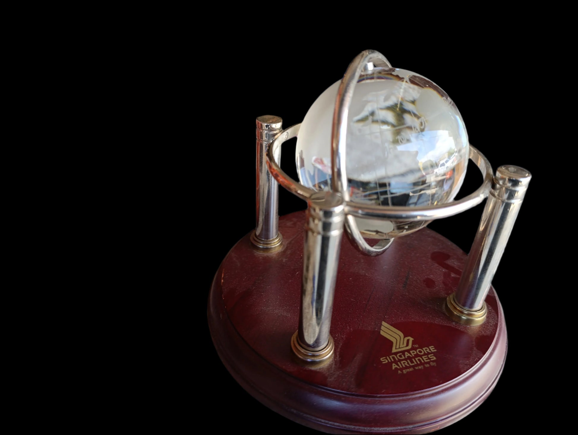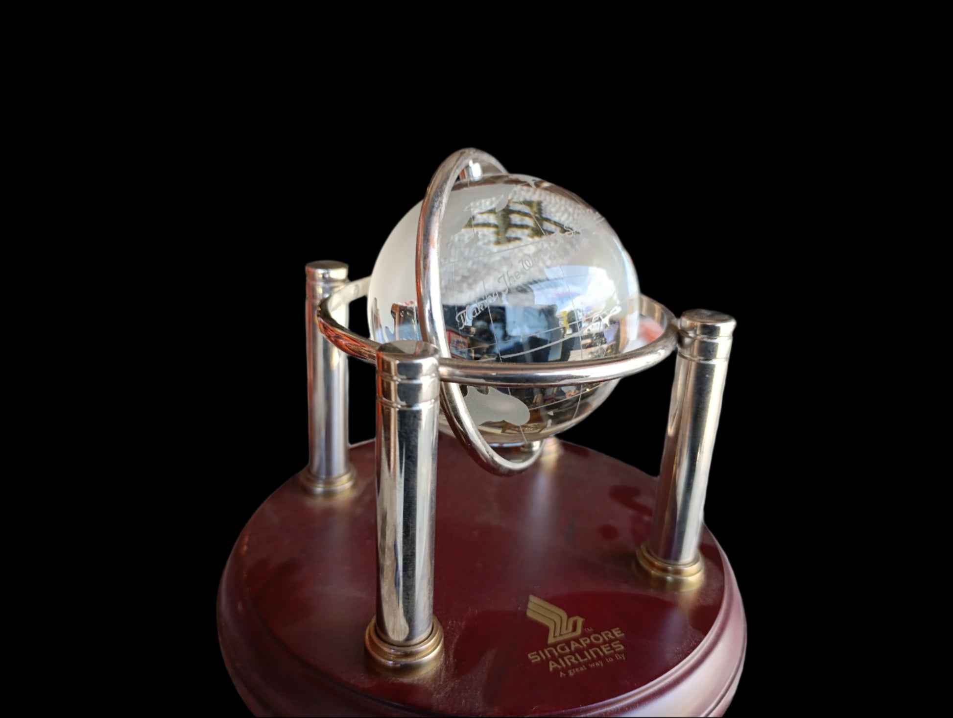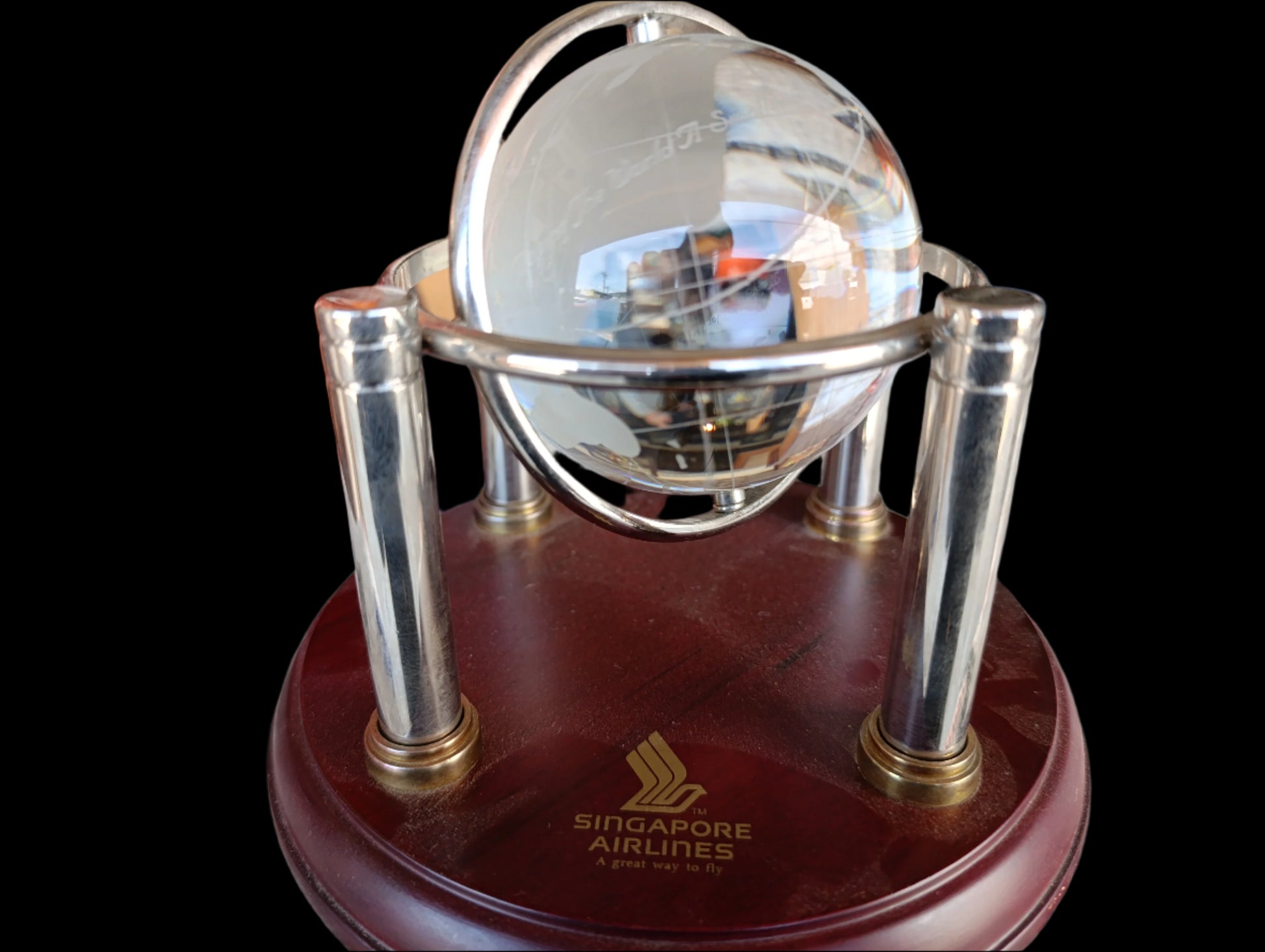 ✔ Logotipo o marca de Singapore Airlines impreso o grabado en la base o superficie del globo.