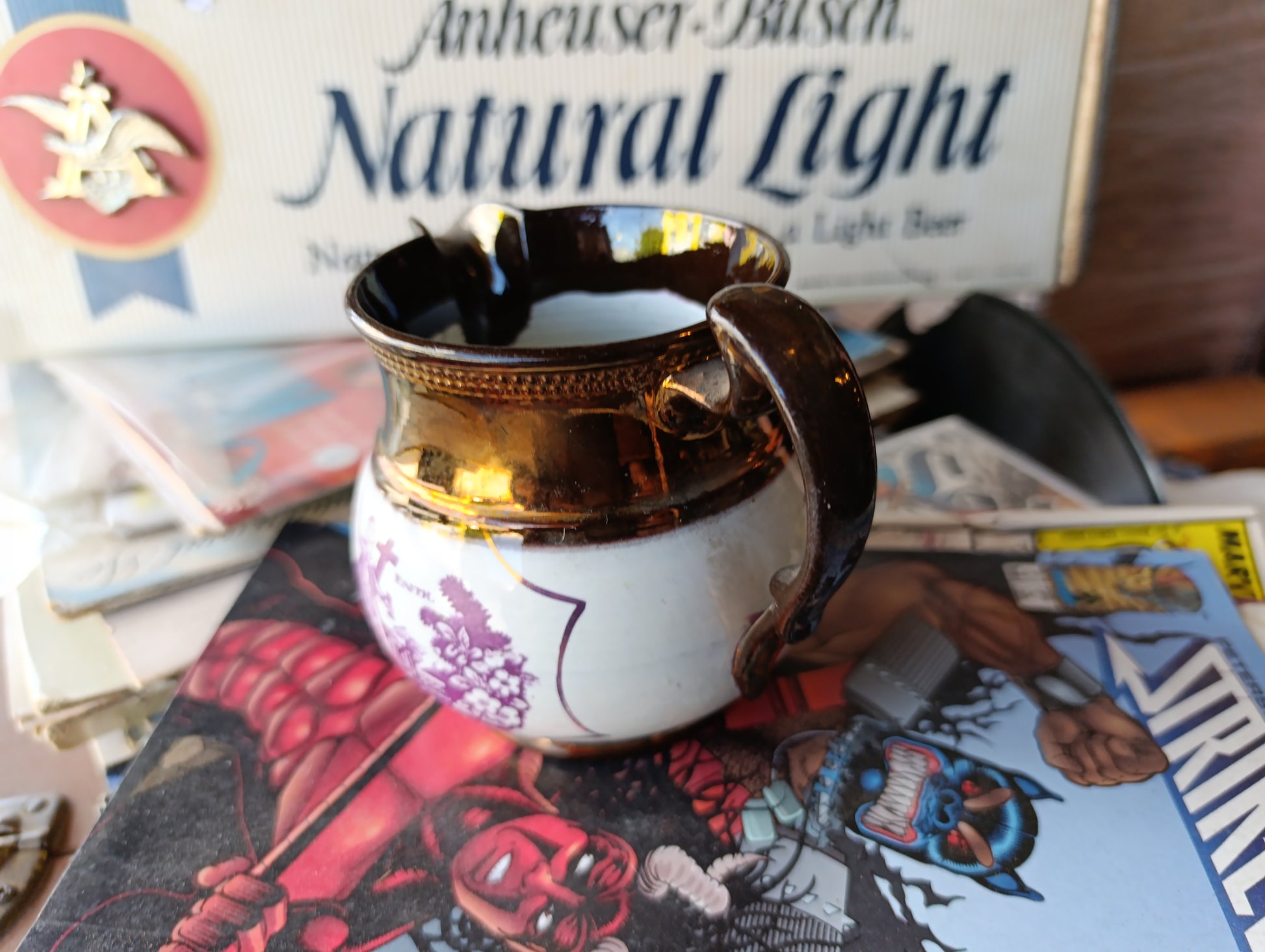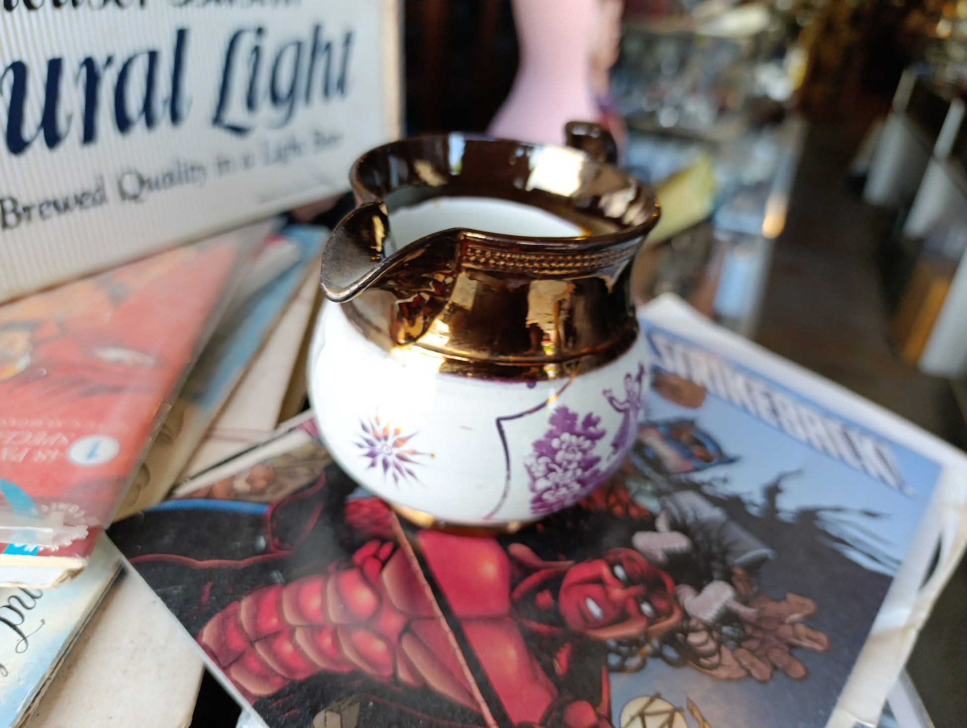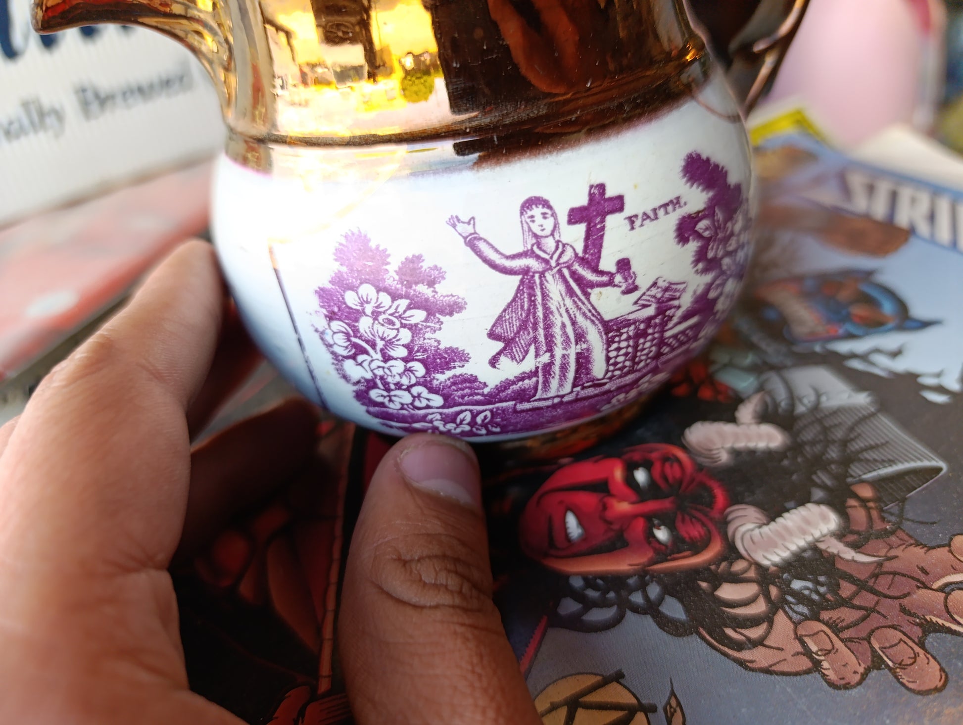 Jarra Antigua Inglesa Sunderland Lustreware Rosa Cobre | “Hope and Faith” | Década de 1830