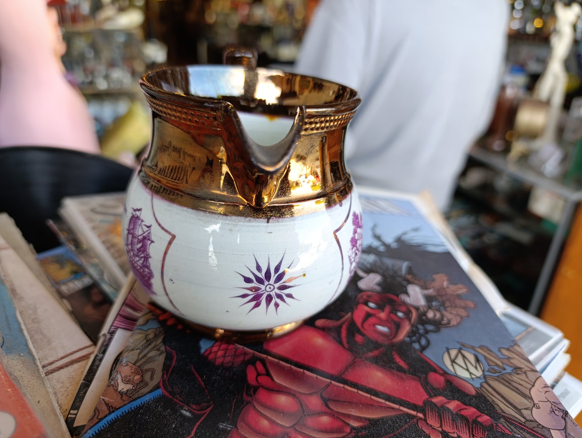 El Sunderland Lustreware es célebre por su característico acabado nacarado y su producción artesanal en el noreste de Inglaterra, especialmente alrededor del puerto de Sunderland.