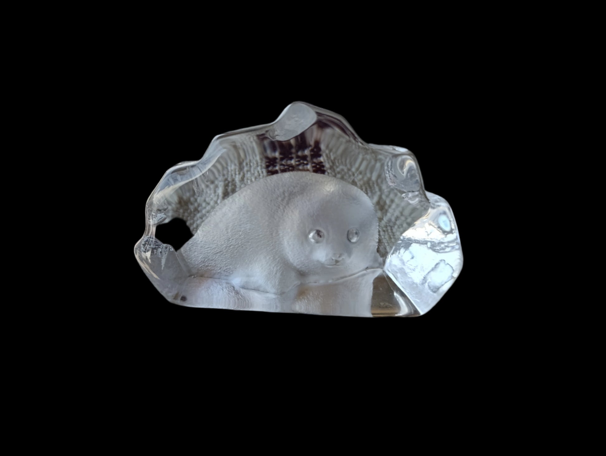 Pisapapeles de Cristal de Plomo Mats Jonasson | Foca Bebé | Firmado y Numerado | Suecia