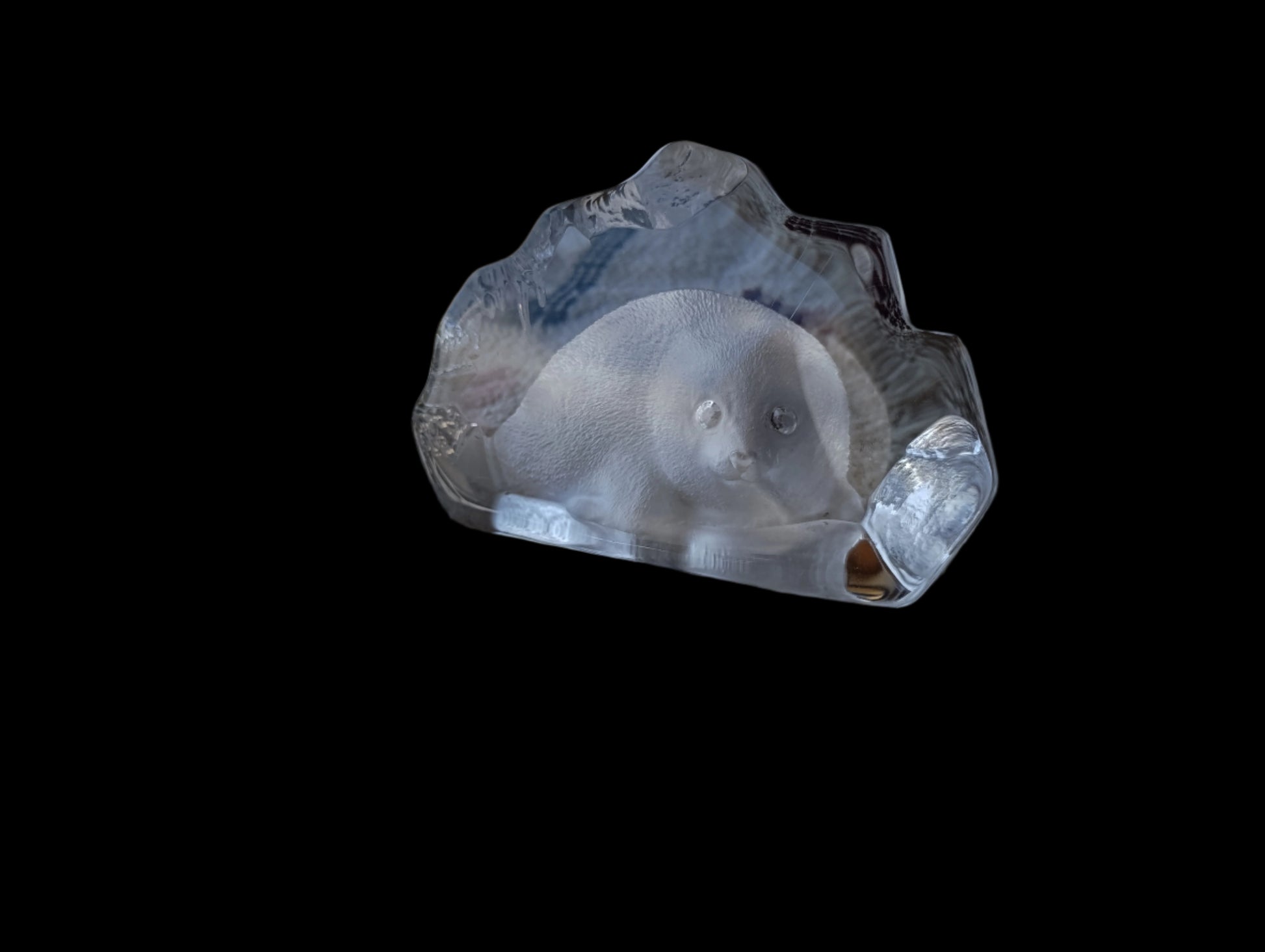 ✔ Diseño: Foca bebé esculpida en alto relieve dentro del cristal, con detalles finos y expresivos.