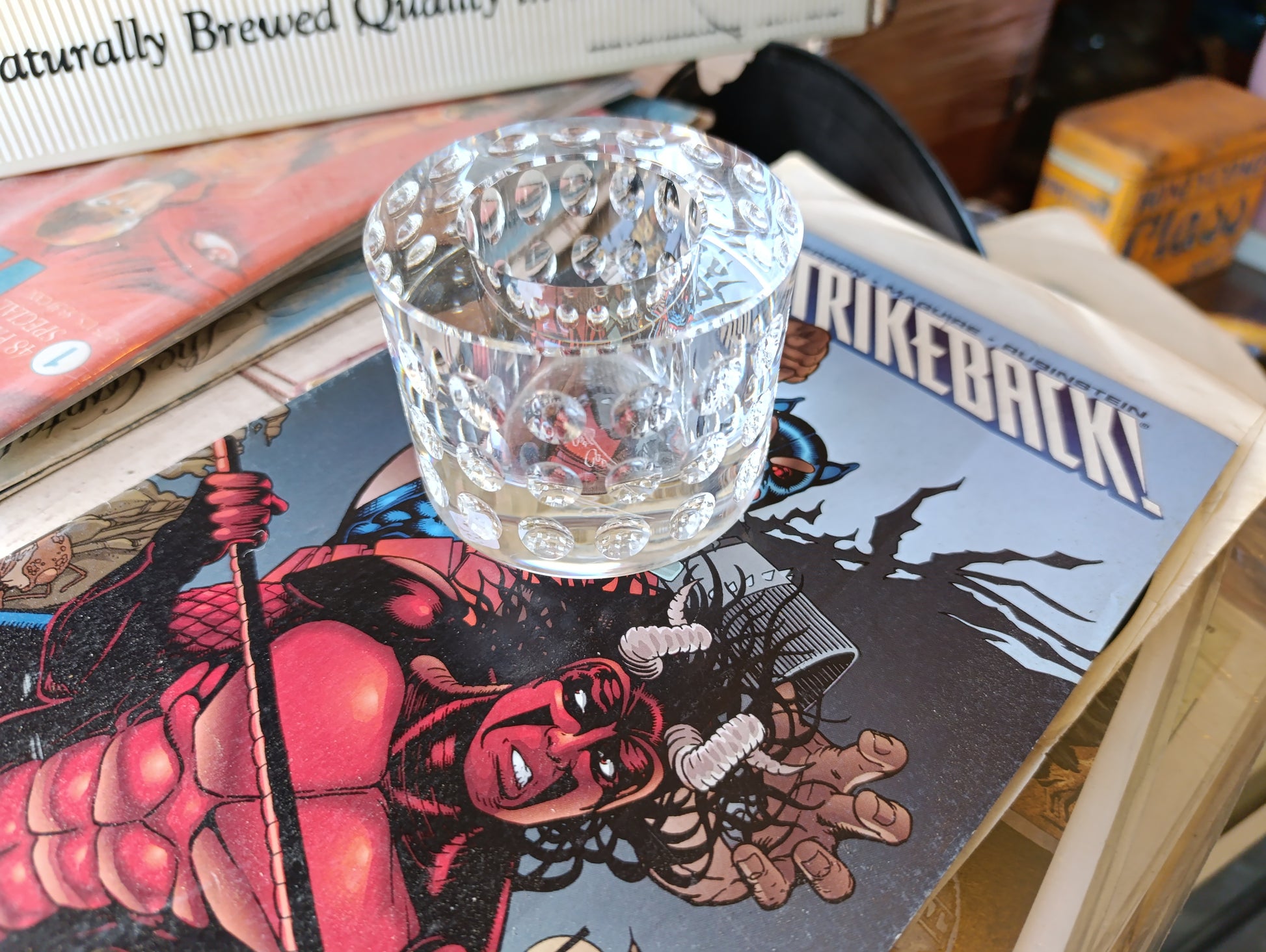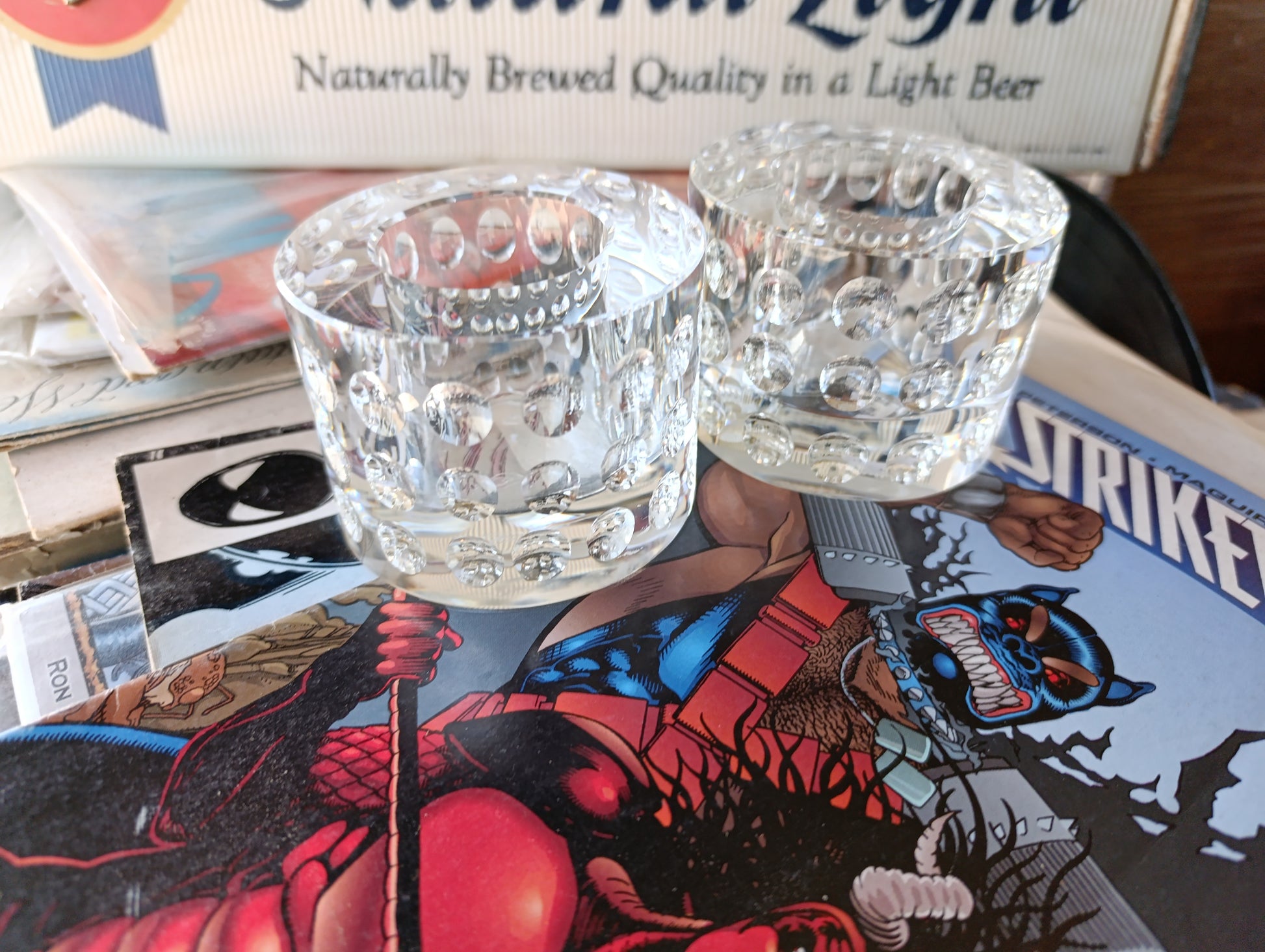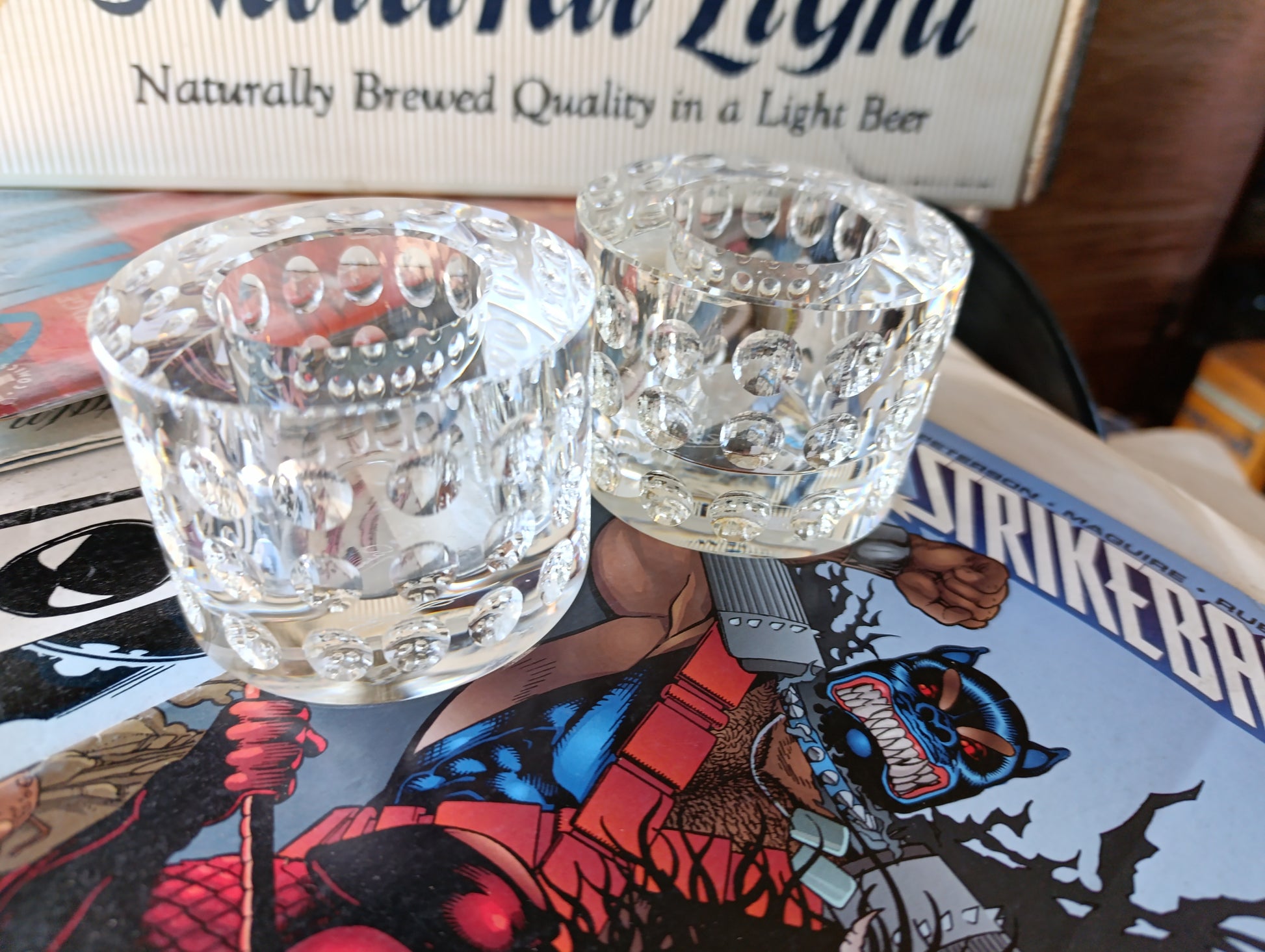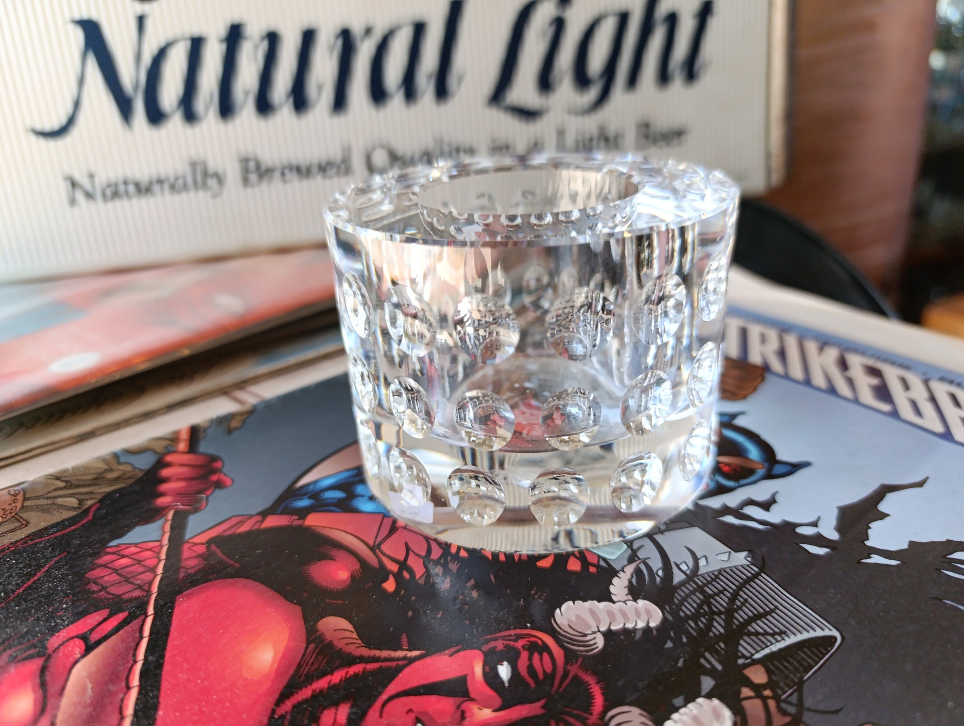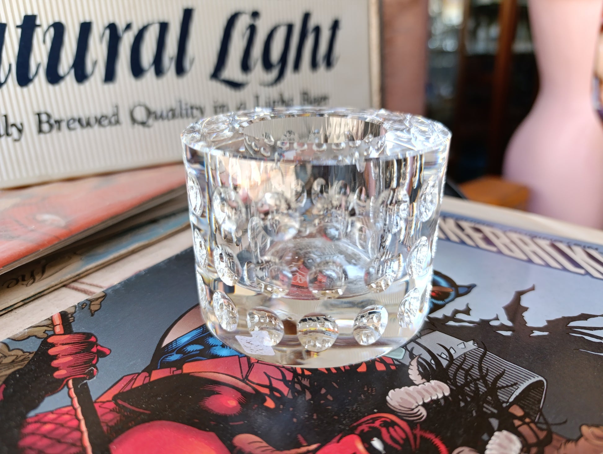 Portavelas Vintage Oleg Cassini de Vidrio Burbuja | Diseño Redondo Elegante